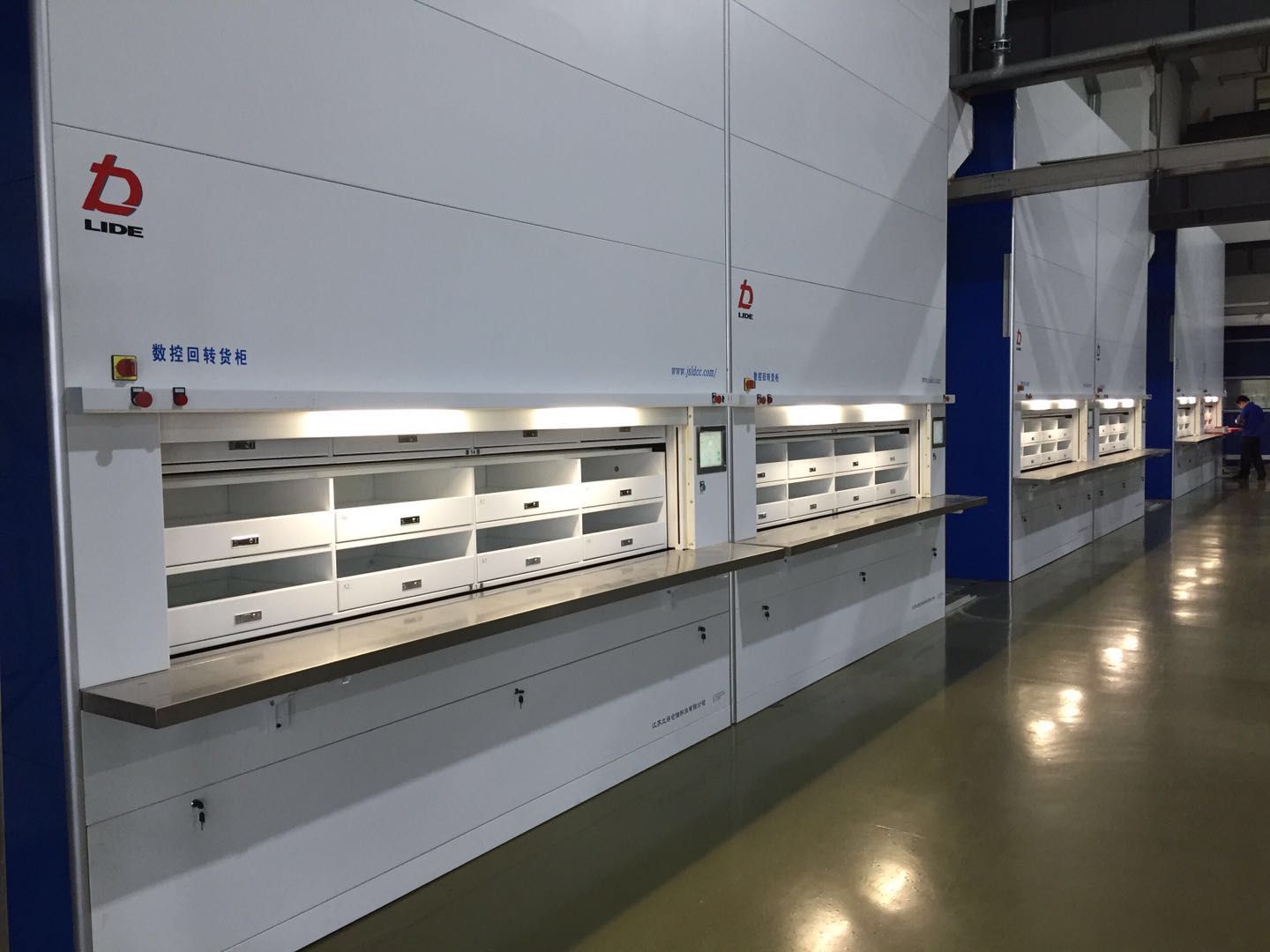 回轉柜采用揀選型工作原理。占地空間小,存放品種多,可達1000多種左右。
